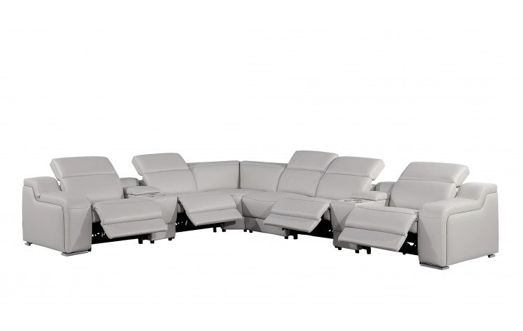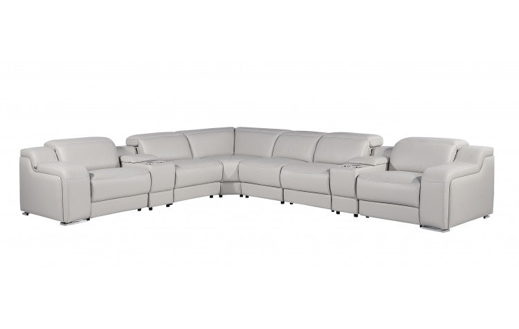 1116 DivanItalia Light Grey Top-Grain Italian Leather 8-Piece Sectional with 4 Power Reclining Seats & Power HeadrestModel:  1116-LT_GRAY-4PWR-8PC