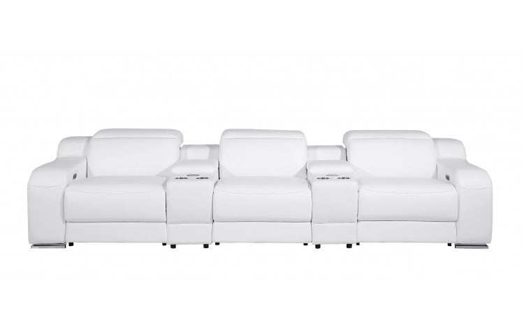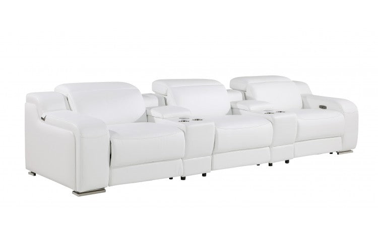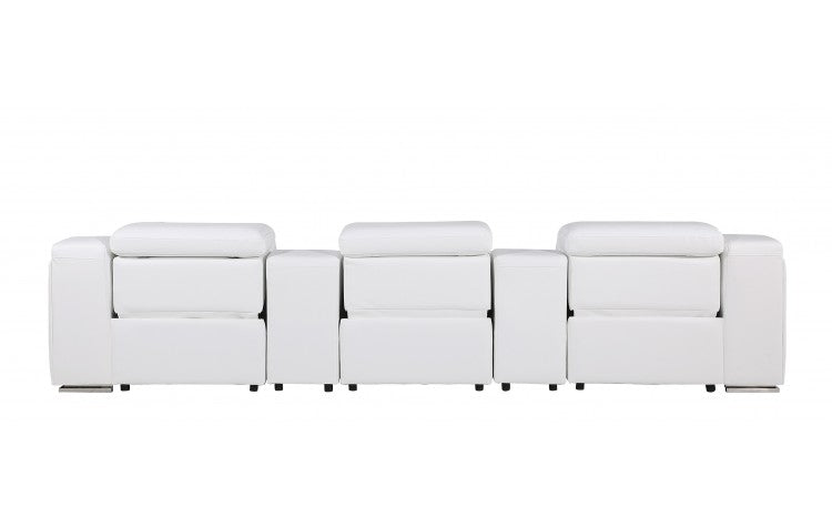1116 DivanItalia White 5-Piece Power Reclining Sofa with Power Headrest in Top Grain Italian LeatherModel: 1116-WHITE-5.3-HT