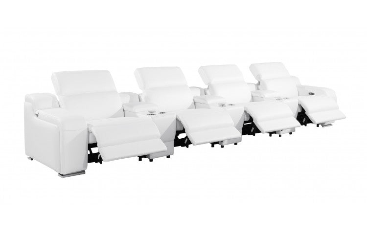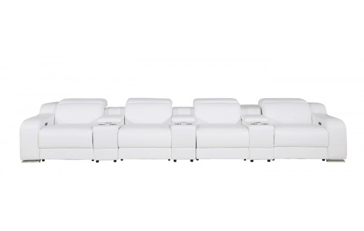 1116 DivanItalia White 7-Piece Power Reclining Sofa with Power Headrest in Top Grain Italian LeatherModel:  1116-WHITE-S-7.4-HT