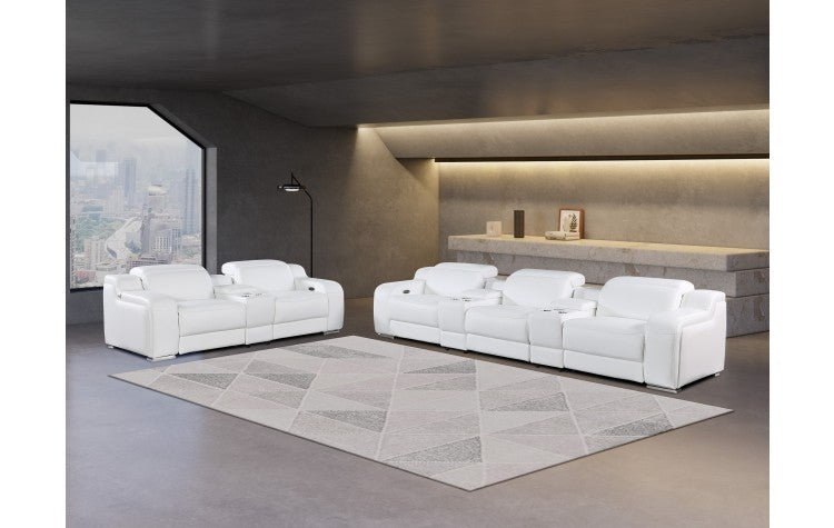 1116 DivanItalia White 8-Piece Modular Power Reclining Sofa Set with Power Headrests – Top Grain Italian LeatherModel:  1116-WHITE-8.5-HT