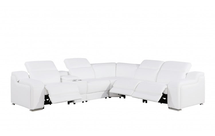1116 DivanItalia White Top-Grain Italian Leather 6-Piece Sectional with 3 Power Reclining Seats & Power HeadrestModel: 1116-WHITE-3PWR-6PC