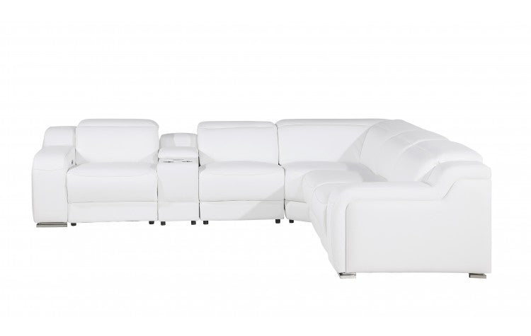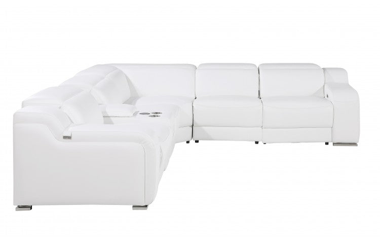 1116 DivanItalia White Top-Grain Italian Leather 6-Piece Sectional with 3 Power Reclining Seats & Power HeadrestModel:  1116-WHITE-3PWR-6PC