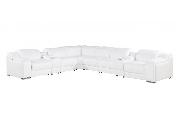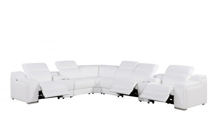 1116 DivanItalia White Top-Grain Italian Leather 8-Piece Sectional with 3 Power Reclining Seats & Power HeadrestModel: 1116-WHITE-3PWR-8PC