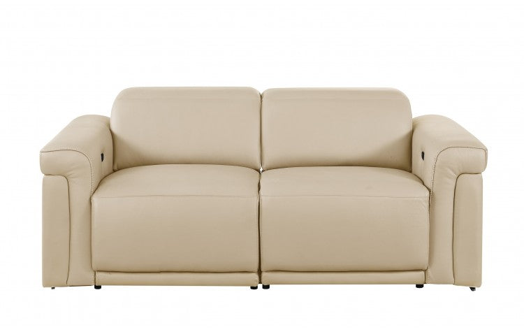 1126 DivanItalia Beige Top Grain Italian Leather Loveseat with Power HeadrestModel: 1126-BEIGE-2.2-HT