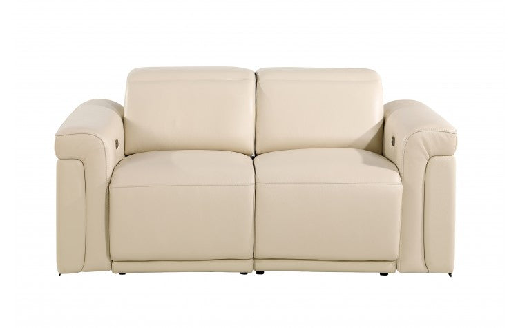 1126 DivanItalia Beige Top Grain Italian Leather Power Reclining Loveseat with Power HeadrestModel: 1126-BEIGE-L