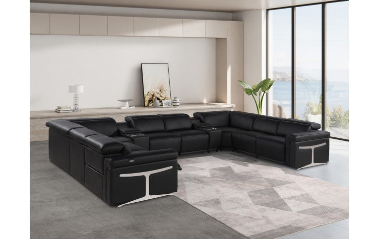 1126 DivanItalia Black 10-Piece Sectional with 4 Power Recliners and Power HeadrestsModel:  1126-BLACK-10PC-4PWR-U-SECTIONAL-GROUP