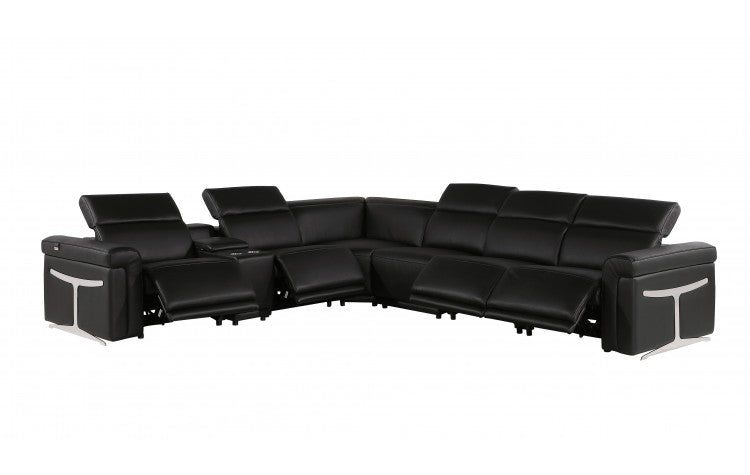 1126 DivanItalia Black 7-Piece Sectional with 4 Power Recliners and Power HeadrestsModel:  1126-BLACK-4PWR-7PC