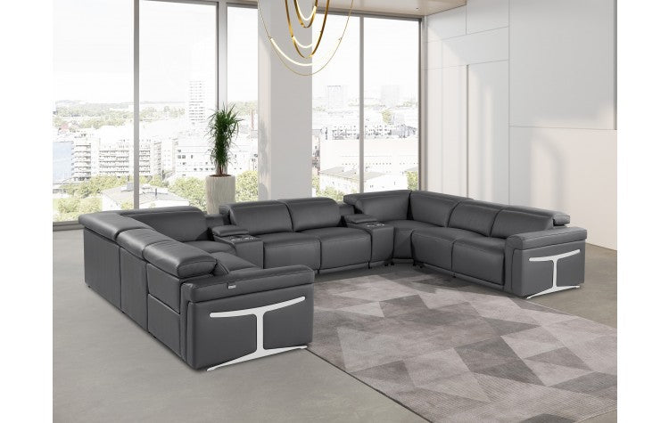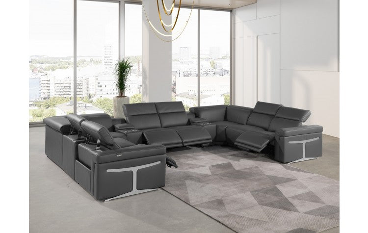 1126 DivanItalia Dark Gray 10-Piece Sectional with 4 Power Recliners and Power HeadrestsModel:  1126-DK_GREY-10PC-4PWR-U-SECTIONAL-GROUP