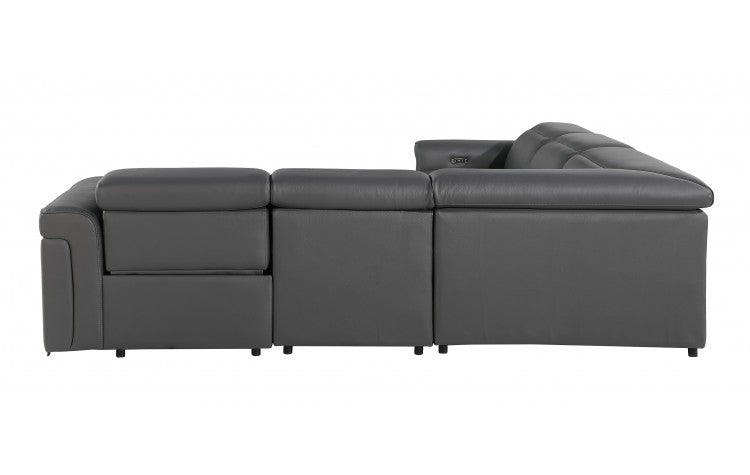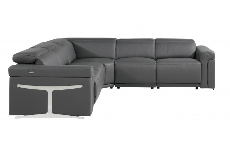 Caviani Top Grain Leather Sofa Set Model: 1126-DK_GRAY-3PWR-5PC
