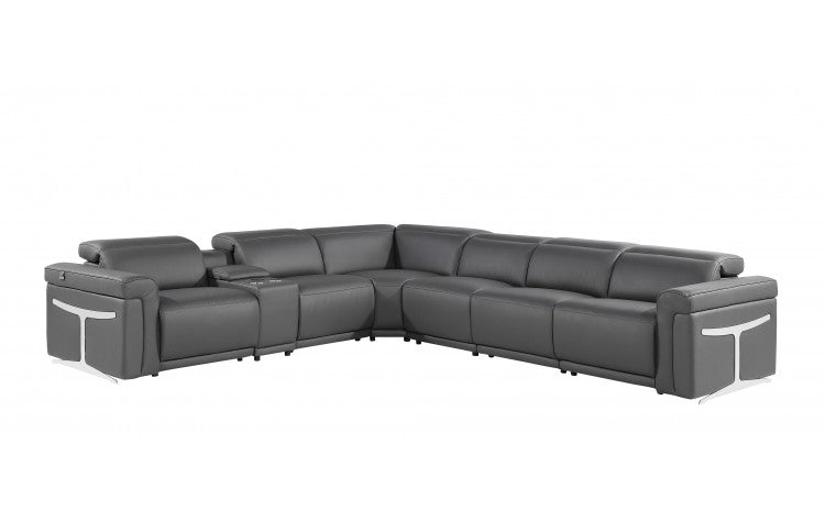 1126 DivanItalia Dark Gray 7-Piece Sectional with 4 Power Recliners and Power HeadrestsModel:  1126-DK_GRAY-4PWR-7PC