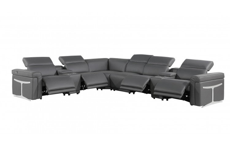 1126 DivanItalia Dark Gray 8-Piece Sectional with 4 Power Recliners and Power HeadrestsModel:  1126-DK_GRAY-4PWR-8PC
