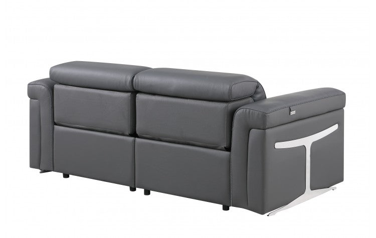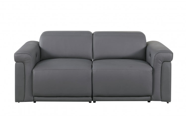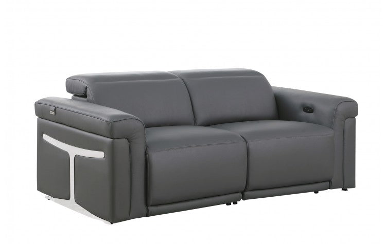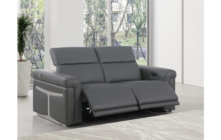 1126 DivanItalia Dark Grey Top Grain Italian Leather Loveseat with Power HeadrestModel: 1126-DK_GREY-2.2-HT