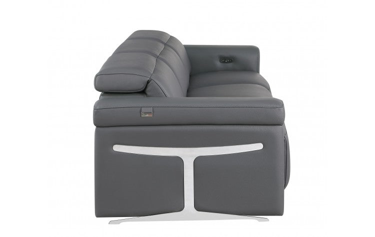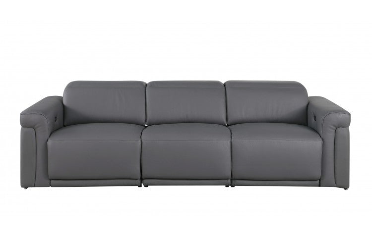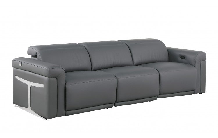 1126 DivanItalia Dark Grey Top Grain Italian Leather Power Reclining Sofa with Dual Recliners and Power HeadrestsModel: 1126-DK_GREY-3.2-S-HT