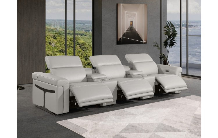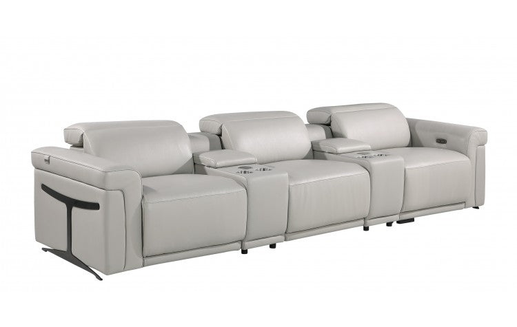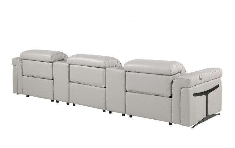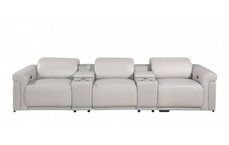1126 DivanItalia Light Gray 5-Piece Power Reclining Sofa with Power Headrest in Top Grain Italian LeatherModel: 1126-LT_GREY-5.3-HT