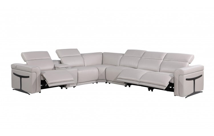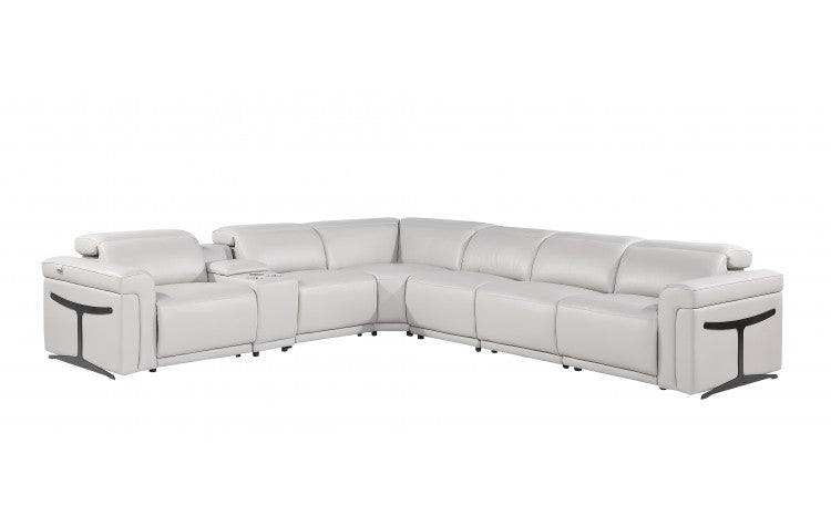 1126 DivanItalia Light Gray 7-Piece Sectional with 3 Power Recliners and Power HeadrestsModel: 1126-LT_GRAY-3PWR-7PC