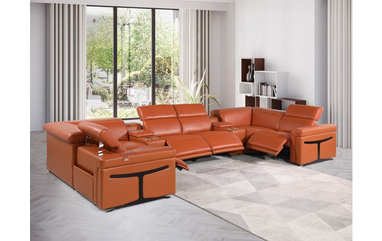 1126 DivanItalia Orange 8-Piece Sectional with 4 Power Recliners and Power HeadrestsModel:  1126-CAMEL-8PC-4PWR-U-SECTIONAL-GROUP