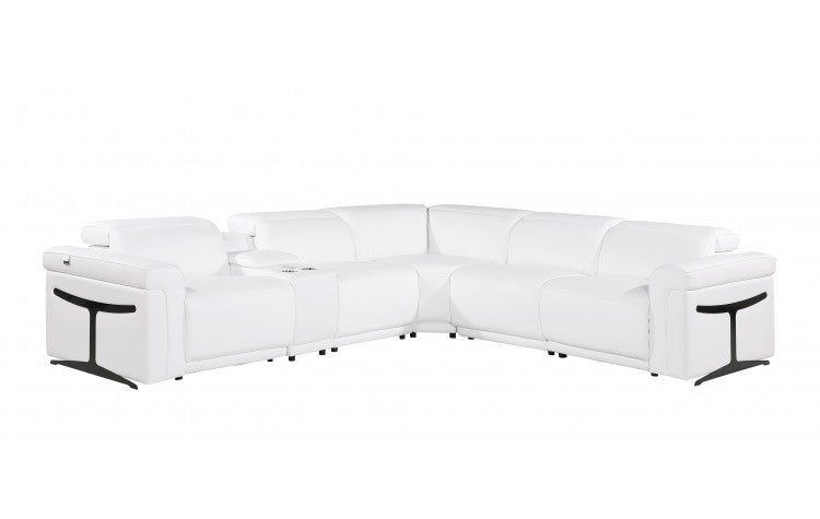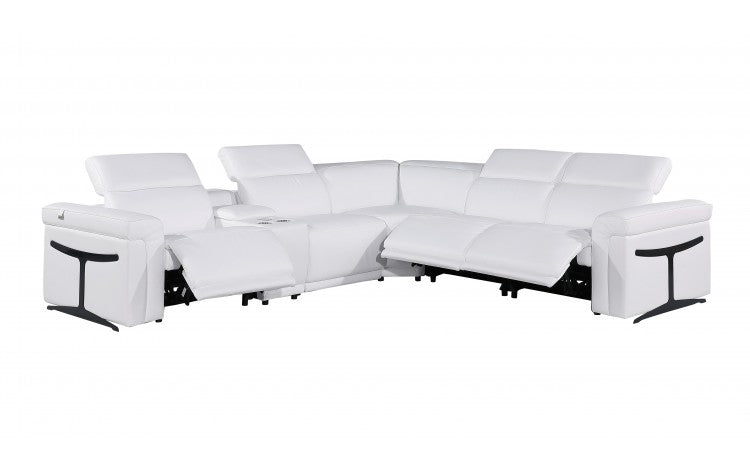 1126 DivanItalia White 6-Piece Sectional with 3 Power Recliners and Power HeadrestsModel: 1126-WHITE-3PWR-6PC