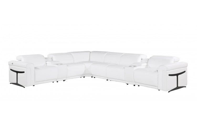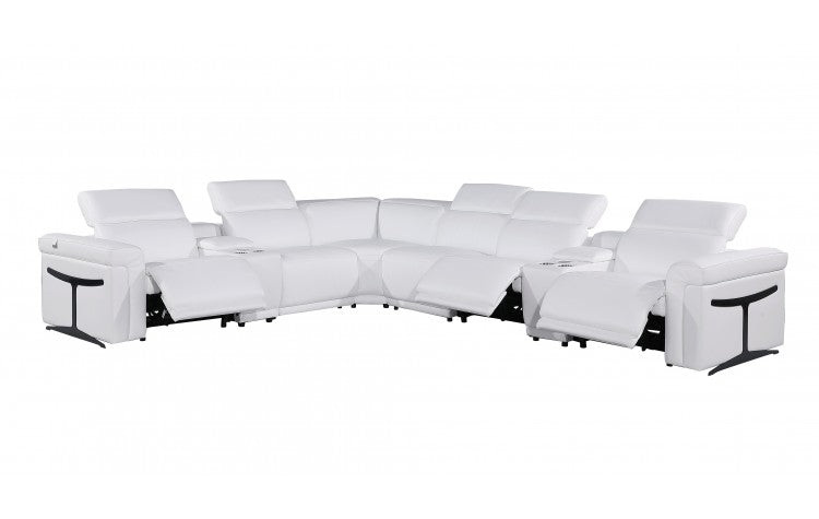 1126 DivanItalia White 8-Piece Sectional with 3 Power Recliners and Power HeadrestsModel: 1126-WHITE-3PWR-8PC