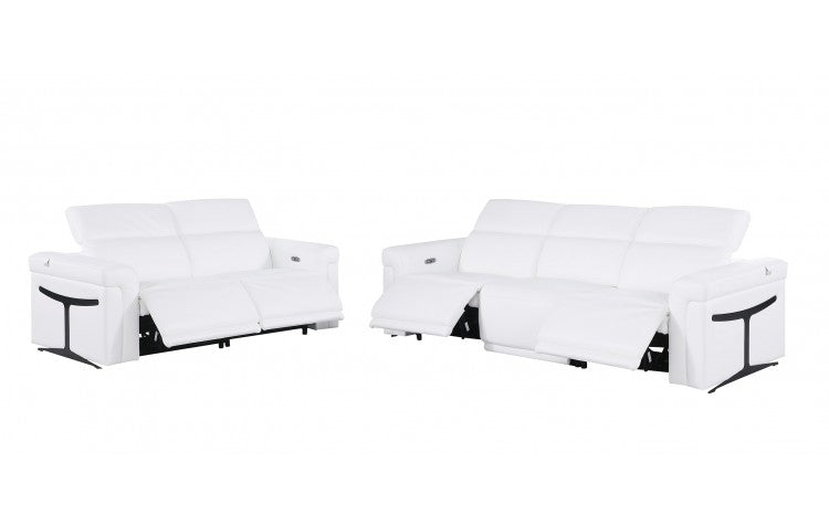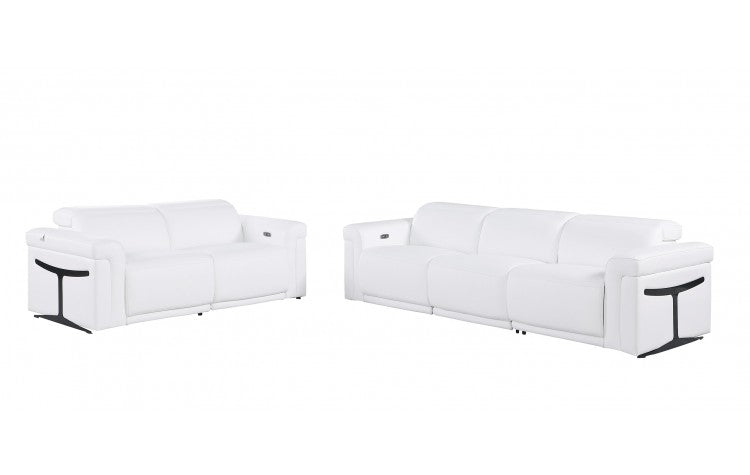 1126 DivanItalia White Modular Power Reclining Sofa and Loveseat Set – Top Grain Italian Leather with Power HeadrestsModel: 1126-WHITE-5.4-HT-2PC