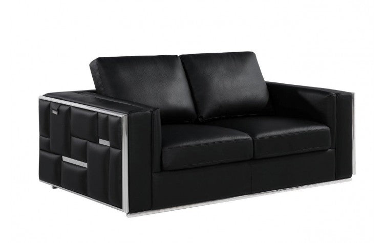 1130 DivanItalia Black Loveseat – Top Grain Italian LeatherModel: 1130-BLACK-L