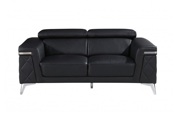 Caviani Top Grain Leather Loveseat  Model: 1140-BLACK-L