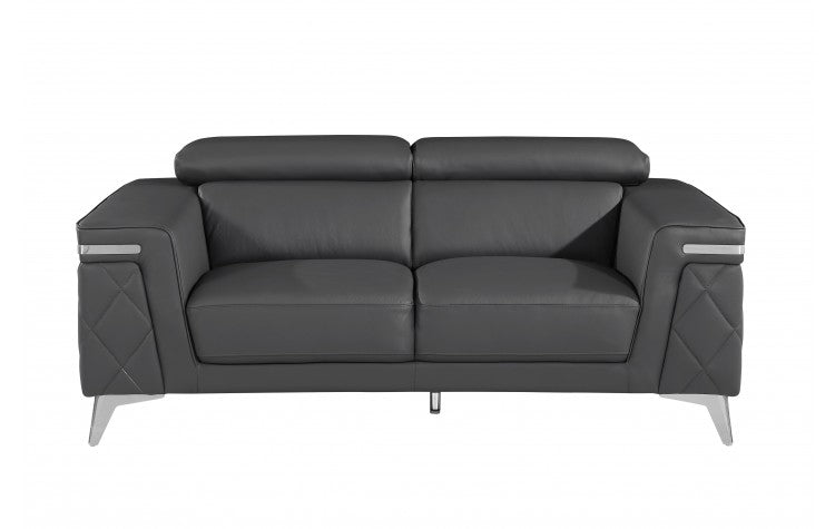 Caviani Top Grain Leather Loveseat Model: 1140-DK-GREY-L
