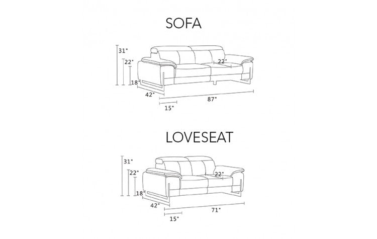 636 DivanItalia Dark Gray Sofa and Loveseat Set – Top Grain Italian LeatherModel: 636-DARK-GRAY-2PC