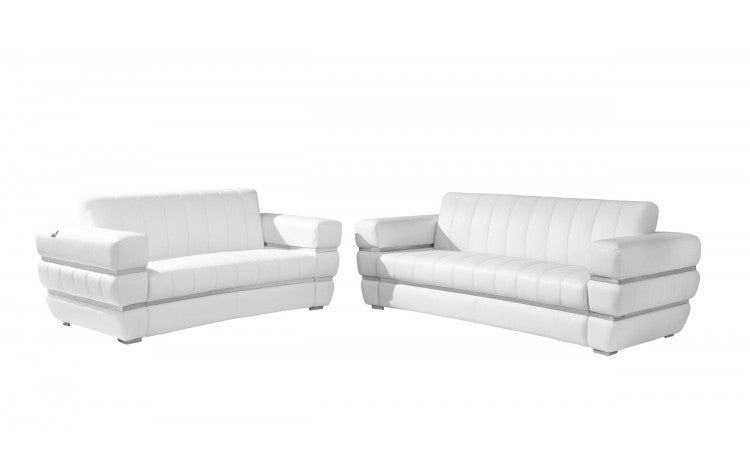 904 DivanItalia White Sofa and Loveseat Set – Top Grain Italian LeatherModel:  904-WHITE-2PC