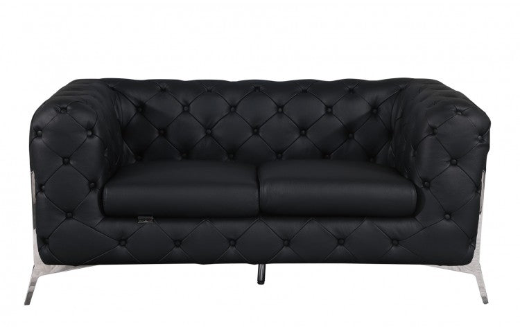 970 DivanItalia Black Loveseat – Top Grain Italian LeatherModel: 970-BLACK-L