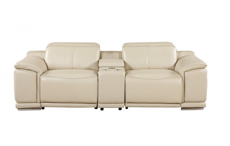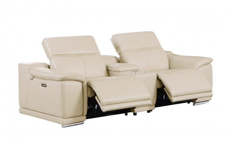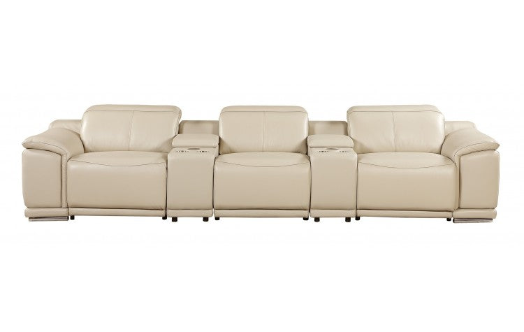 9762 DivanItalia Beige 8-Piece Modular Power Reclining Sofa and Loveseat Set – Top Grain Italian LeatherModel:  9762-BEIGE-8.5-HT