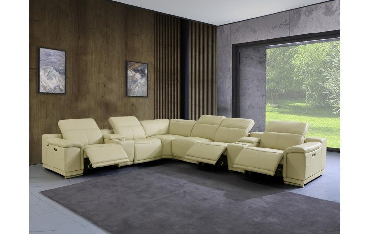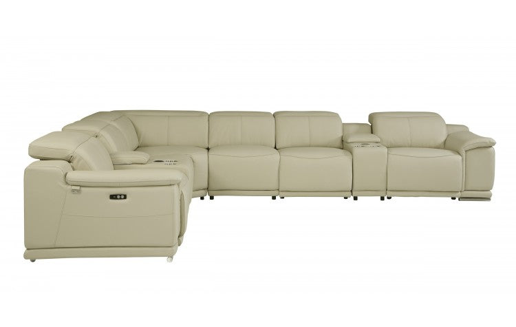 9762 DivanItalia Beige 8-Piece Sectional – Top Grain Italian Leather with 3 Power Recliners and 2 ConsolesModel:  9762-BEIGE-3PWR-8PC