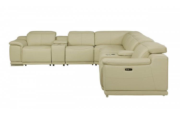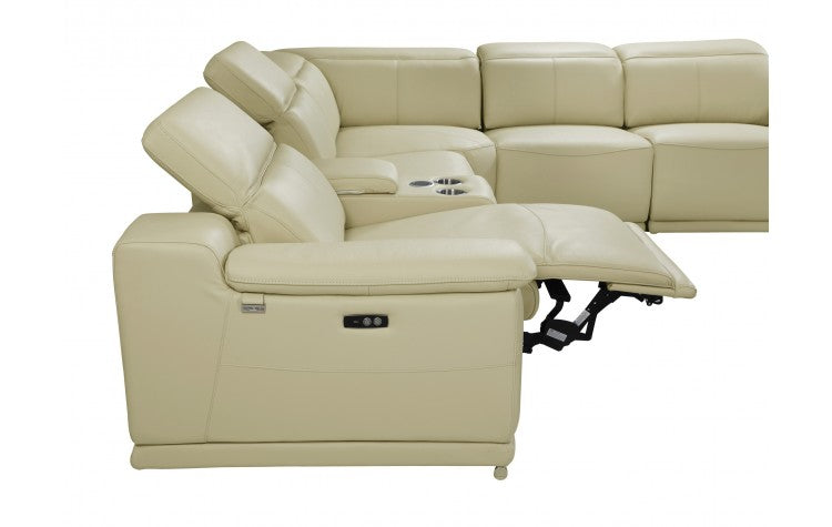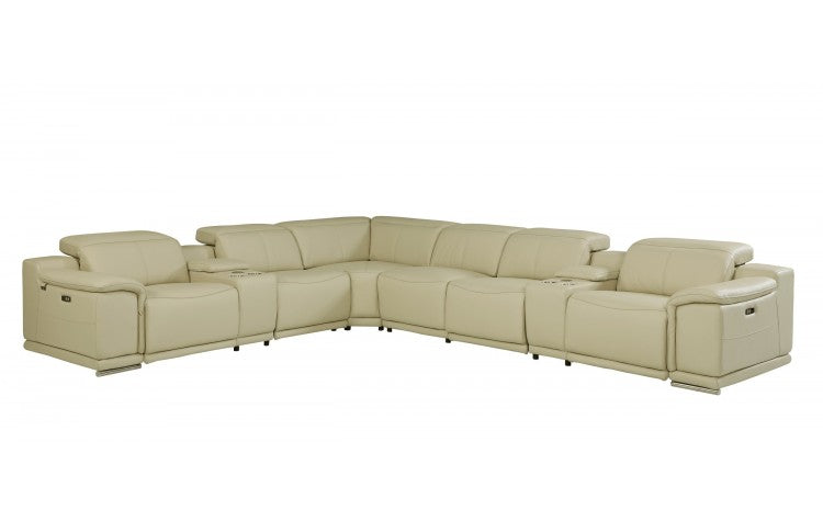 9762 DivanItalia Beige 8-Piece Sectional – Top Grain Italian Leather with 3 Power Recliners and 2 ConsolesModel: 9762-BEIGE-3PWR-8PC