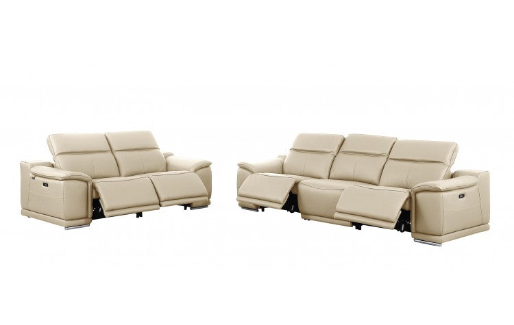 9762 DivanItalia Beige Modular Power Reclining Sofa and Loveseat Set in Top Grain Italian LeatherModel:  9762-BEIGE-5.4-HT-2PC