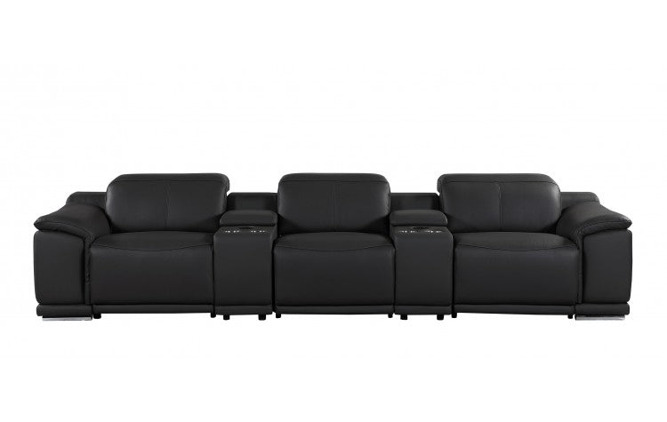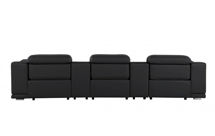 9762 DivanItalia Black 5-Piece Modular Power Reclining Sofa – Top Grain Italian LeatherModel: 9762-BLACK-5.3-HT