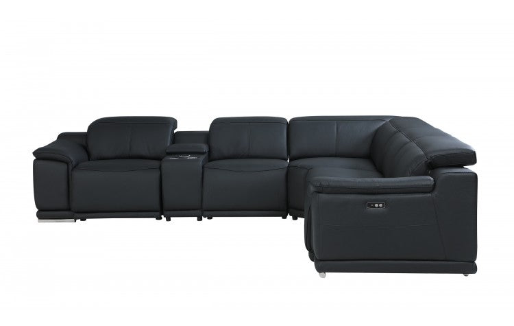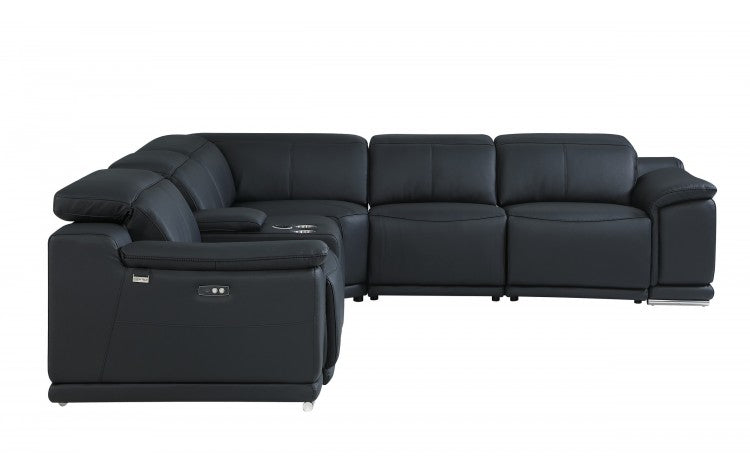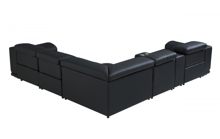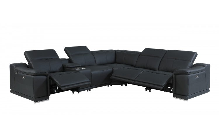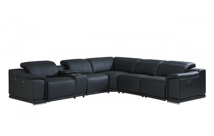 9762 DivanItalia Black 6-Piece Sectional with 3 Power Recliners and 1 Console – Top Grain Italian LeatherModel: 9762-BLACK-3PWR-6PC