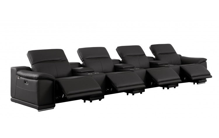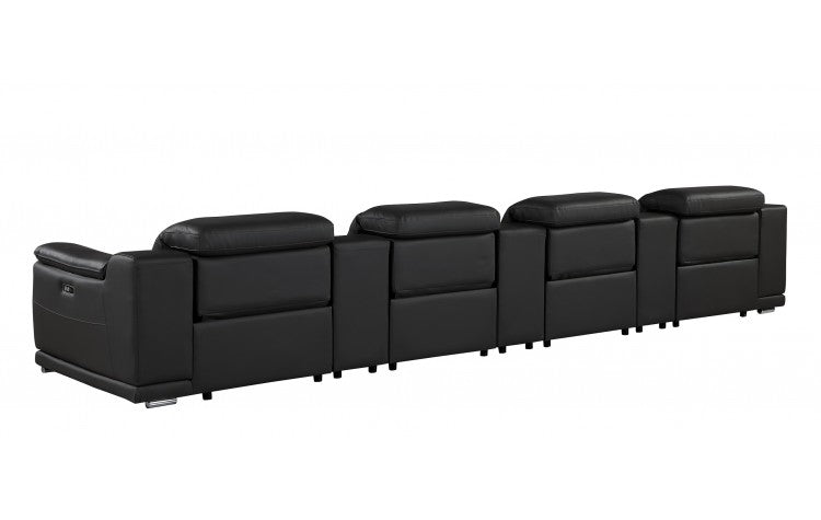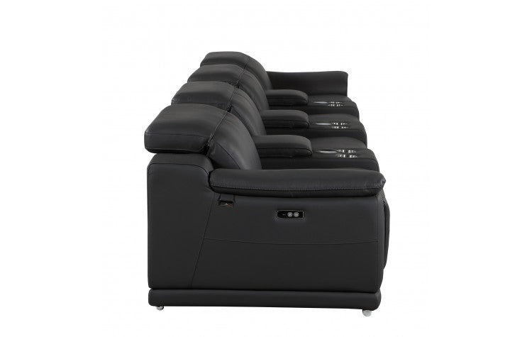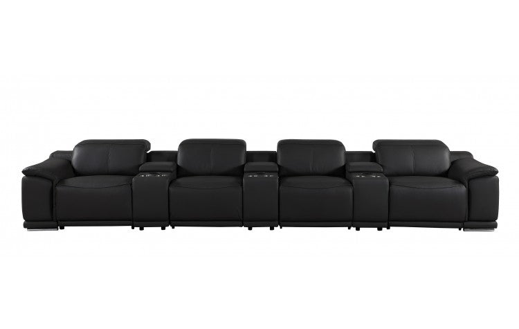 9762 DivanItalia Black 7-Piece Modular Power Reclining Sofa – Top Grain Italian LeatherModel: 9762-BLACK-S-7.4-HT
