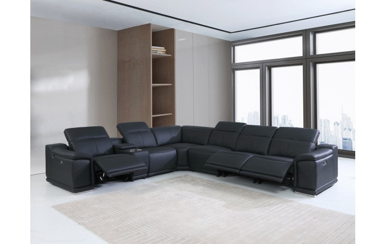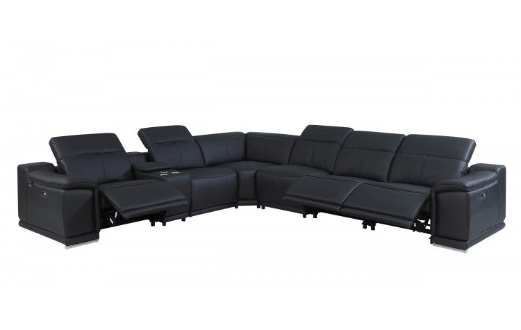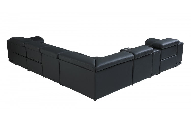 9762 DivanItalia Black 7-Piece Sectional with 3 Power Recliners and 1 Console – Top Grain Italian LeatherModel:  9762-BLACK-3PWR-7PC