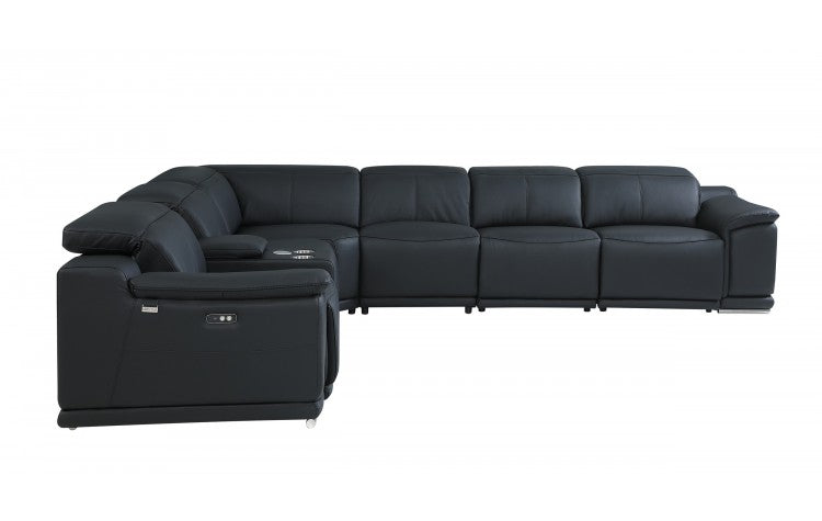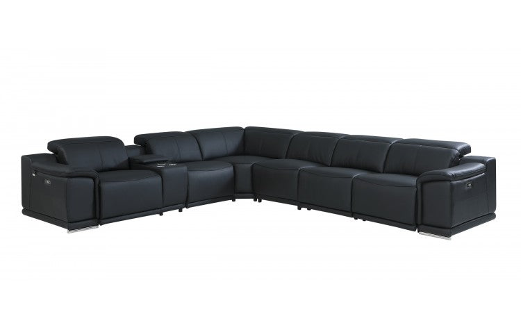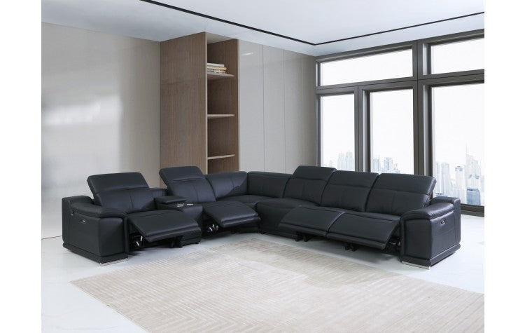 9762 DivanItalia Black 7-Piece Sectional with 4 Power Recliners and 1 Console – Top Grain Italian LeatherModel:  9762-BLACK-4PWR-7PC