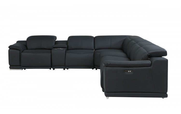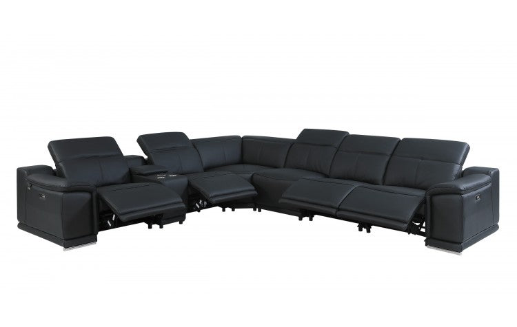 9762 DivanItalia Black 7-Piece Sectional with 4 Power Recliners and 1 Console – Top Grain Italian LeatherModel: 9762-BLACK-4PWR-7PC