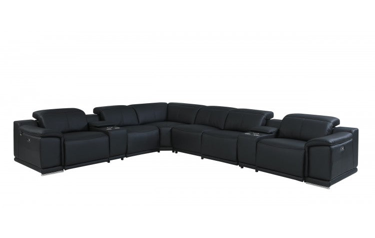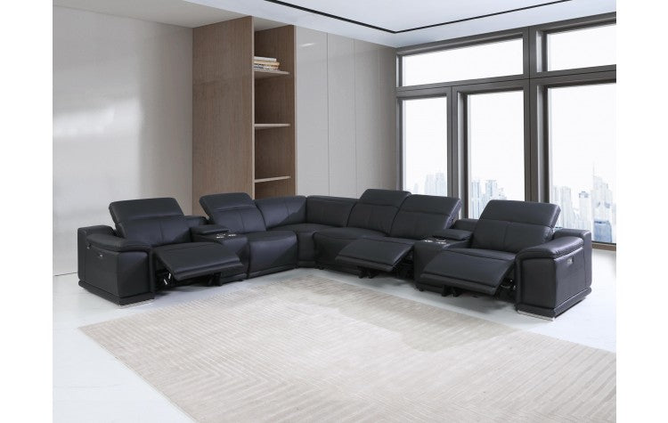 9762 DivanItalia Black 8-Piece Sectional – Top Grain Italian Leather with 3 Power Recliners and 2 ConsolesModel: 9762-BLACK-3PWR-8PC