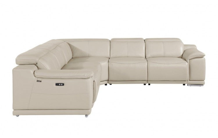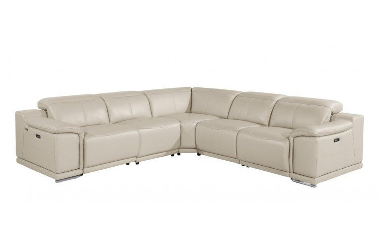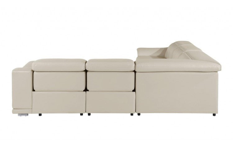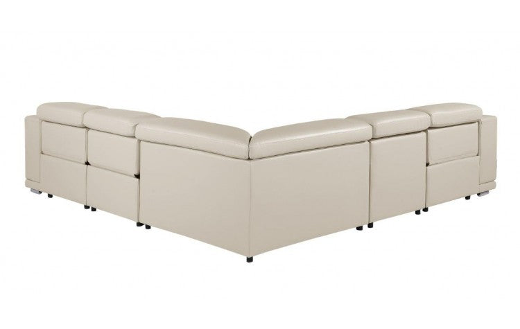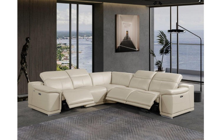 9762 DivanItalia Cream 5-Piece Sectional with 3 Power Recliners and 1 Console – Top Grain Italian LeatherModel:  9762-BEIGE-3PWR-5PC