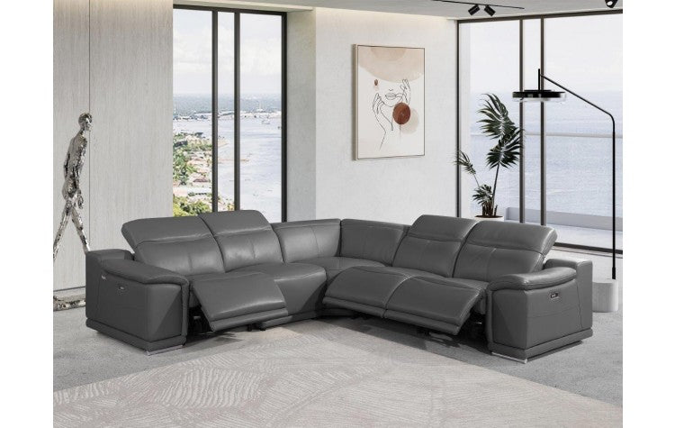 9762 DivanItalia Dark Gray 5-Piece Sectional with 3 Power Recliners and 1 Console – Top Grain Italian LeatherModel: 9762-GRAY-3PWR-5PC