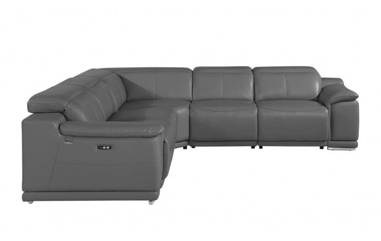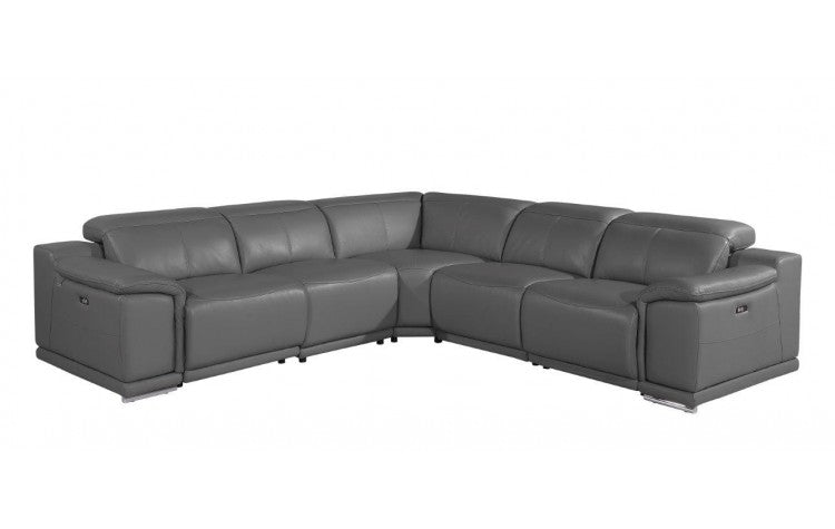 9762 DivanItalia Dark Gray 5-Piece Sectional with 3 Power Recliners and 1 Console – Top Grain Italian LeatherModel:  9762-GRAY-3PWR-5PC