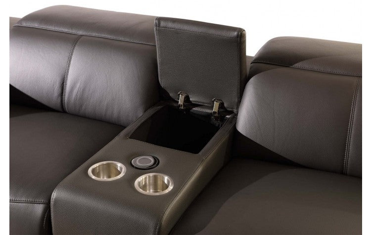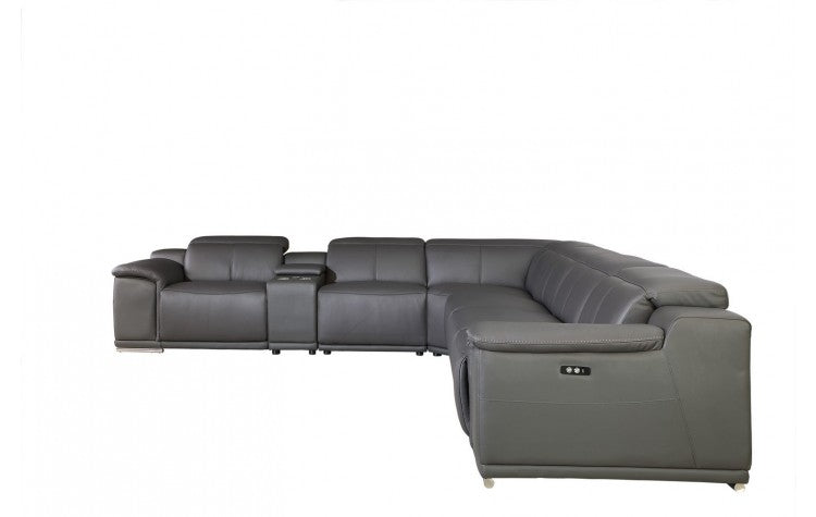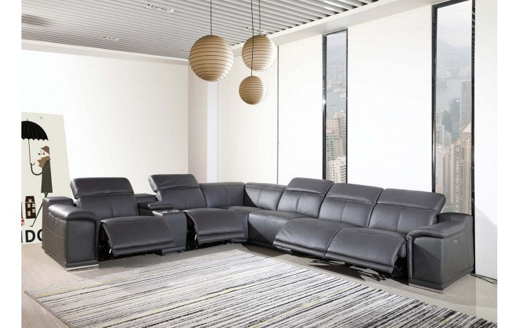 9762 DivanItalia Dark Gray 7-Piece Sectional with 4 Power Recliners and 1 Console – Top Grain Italian LeatherModel:  9762-GRAY-4PWR-7PC