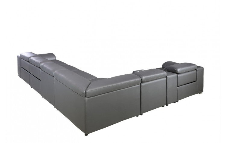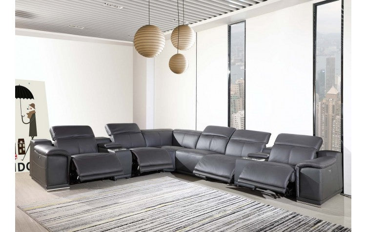 9762 DivanItalia Dark Gray 8-Piece Sectional – Top Grain Italian Leather with 3 Power Recliners and 2 ConsolesModel:  9762-GRAY-4PWR-8PC
