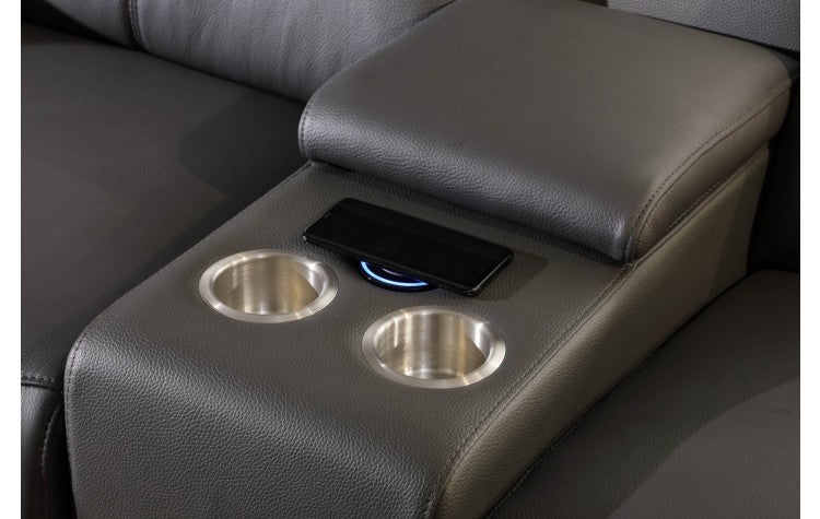 9762 DivanItalia Dark Gray 8-Piece Sectional with 3 Power Recliners and 2 Console – Top Grain Italian LeatherModel: 9762-GRAY-3PWR-8PC
