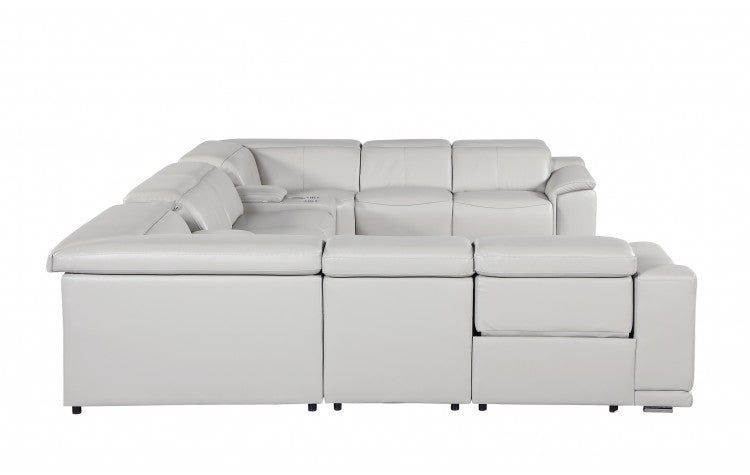 9762 DivanItalia Light Gray 10-Piece Sectional – Top Grain Italian Leather with 4 Power Recliners and 2 ConsolesModel: 9762-LT-GREY-10PC-4PWR-U-SECTIONAL-GROUP