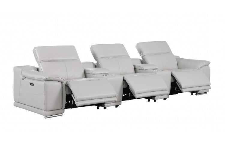 9762 DivanItalia Light Gray 5-Piece Modular Power Reclining Sofa – Top Grain Italian LeatherModel: 9762-LT-GREY-5.3-HT