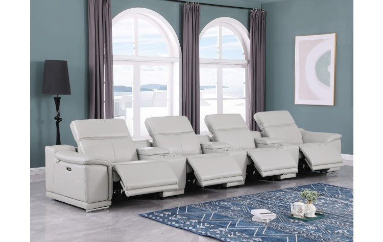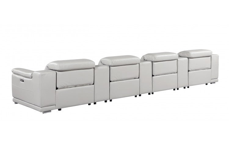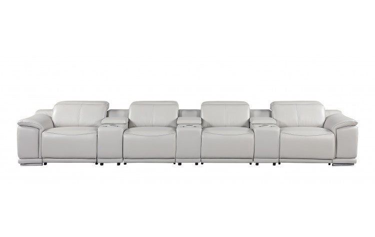 9762 DivanItalia Light Gray 7-Piece Modular Power Reclining Sofa – Top Grain Italian LeatherModel:  9762-LT-GREY-S-7.4-HT