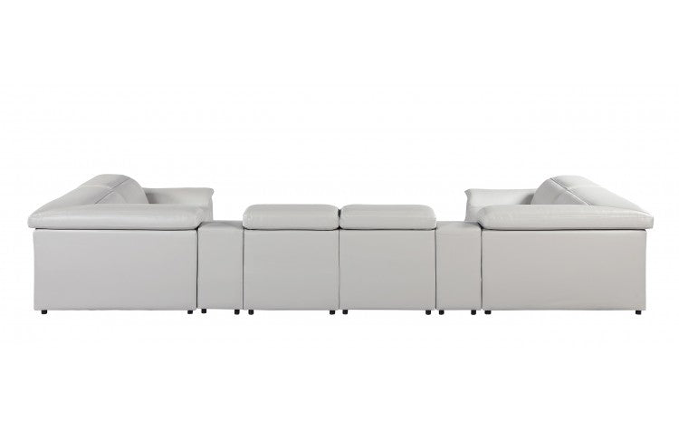 9762 DivanItalia Light Gray 8-Piece Sectional – Top Grain Italian Leather with 2 Power Recliners and 2 ConsolesModel:  9762-LT-GREY-8PC-2PWR-U-SECTIONAL-GROUP